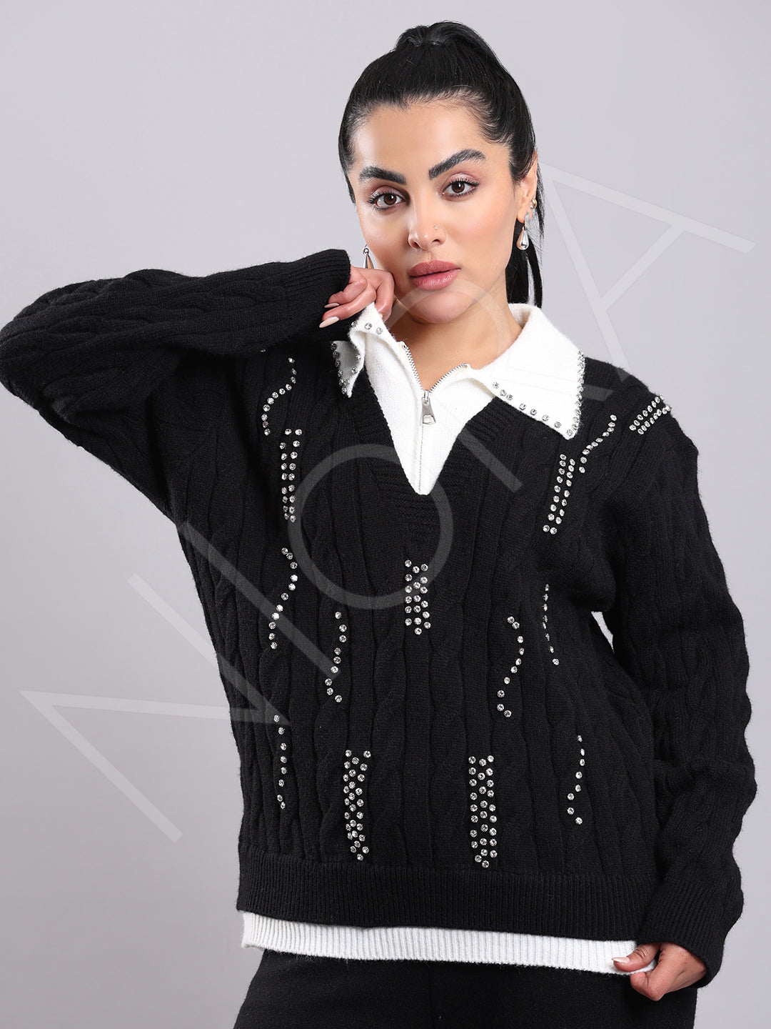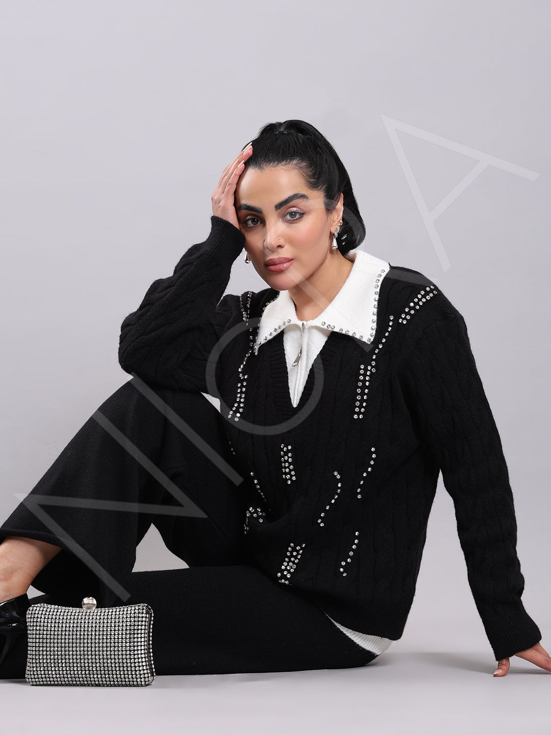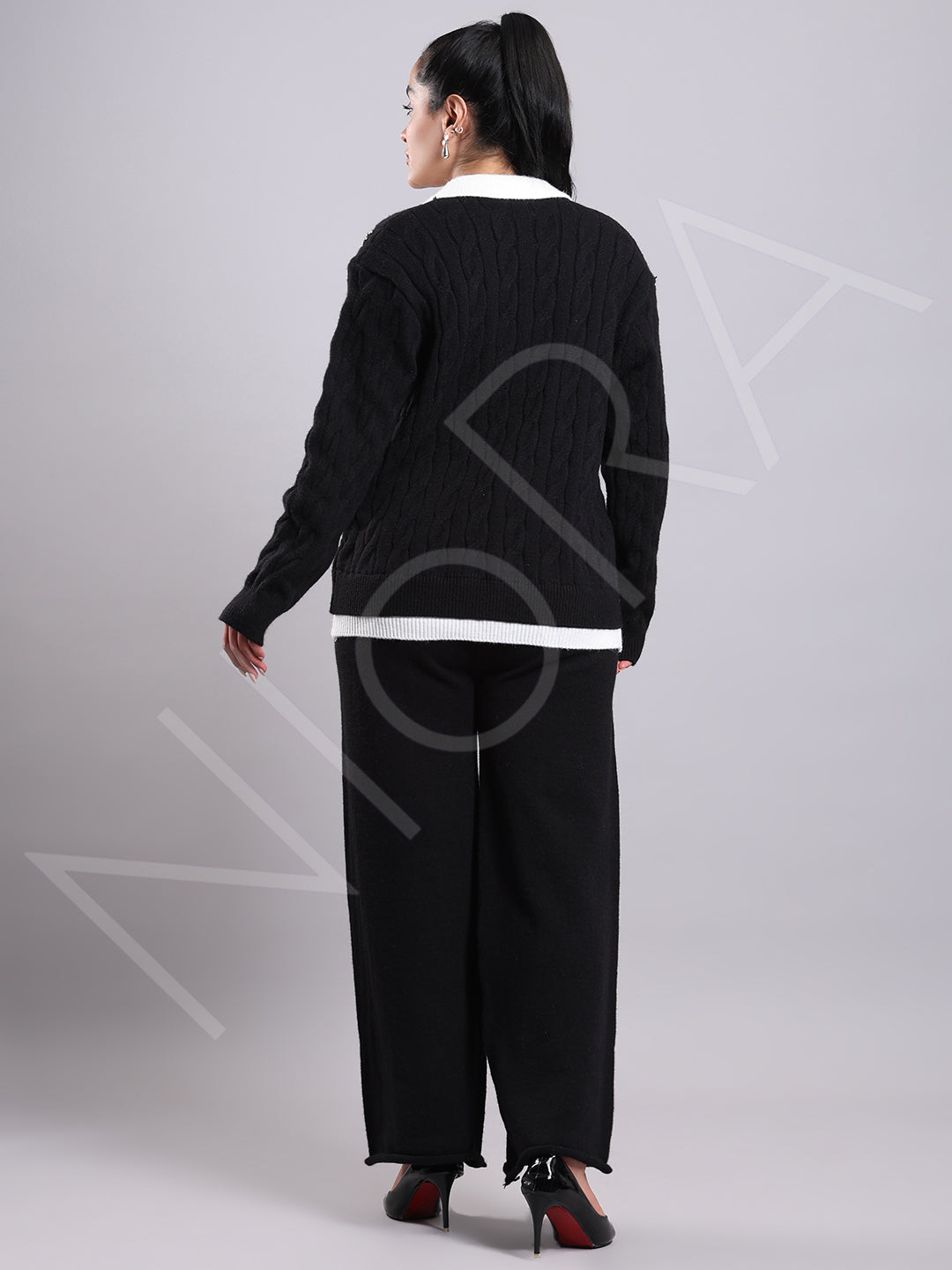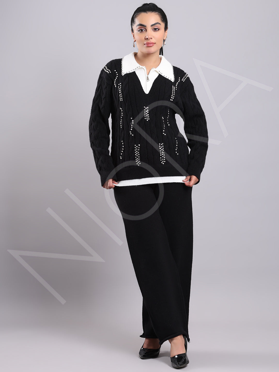 Shine effortlessly in this 2-Piece Embellished Elegance Coord Set, designed for polished winter styling. The upper features a braid-style knit... Read more