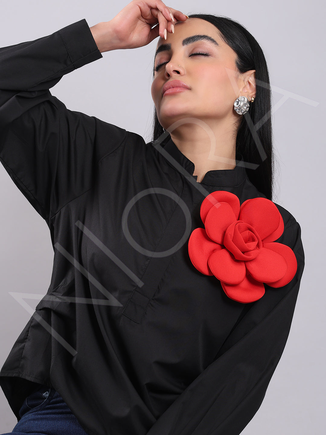 Introducing the Floral Applique Shirt, a refined blend of elegance and modern tailoring. Designed with an open band collar and... Read more